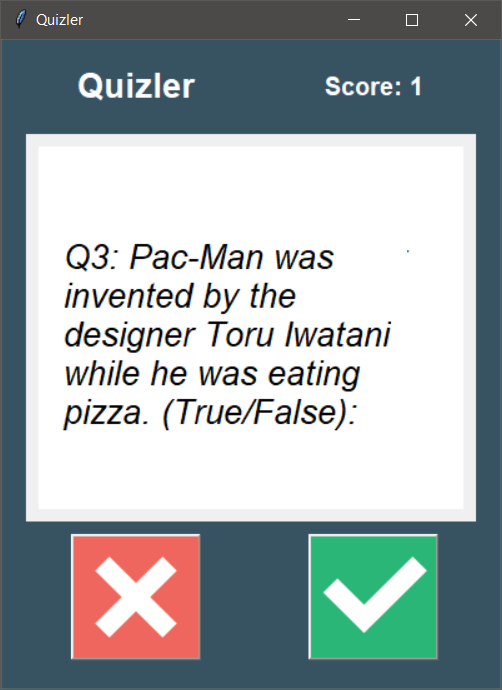 I called it, for the most part. Back on Day 17, we made a simple text Quiz Game. And the way it was put together, I was pretty sure it would come back to get a GUI in a future lesson, and here it is. Additionally, it got a nice API call to the OpenTrivia API to get fresh questions every run.