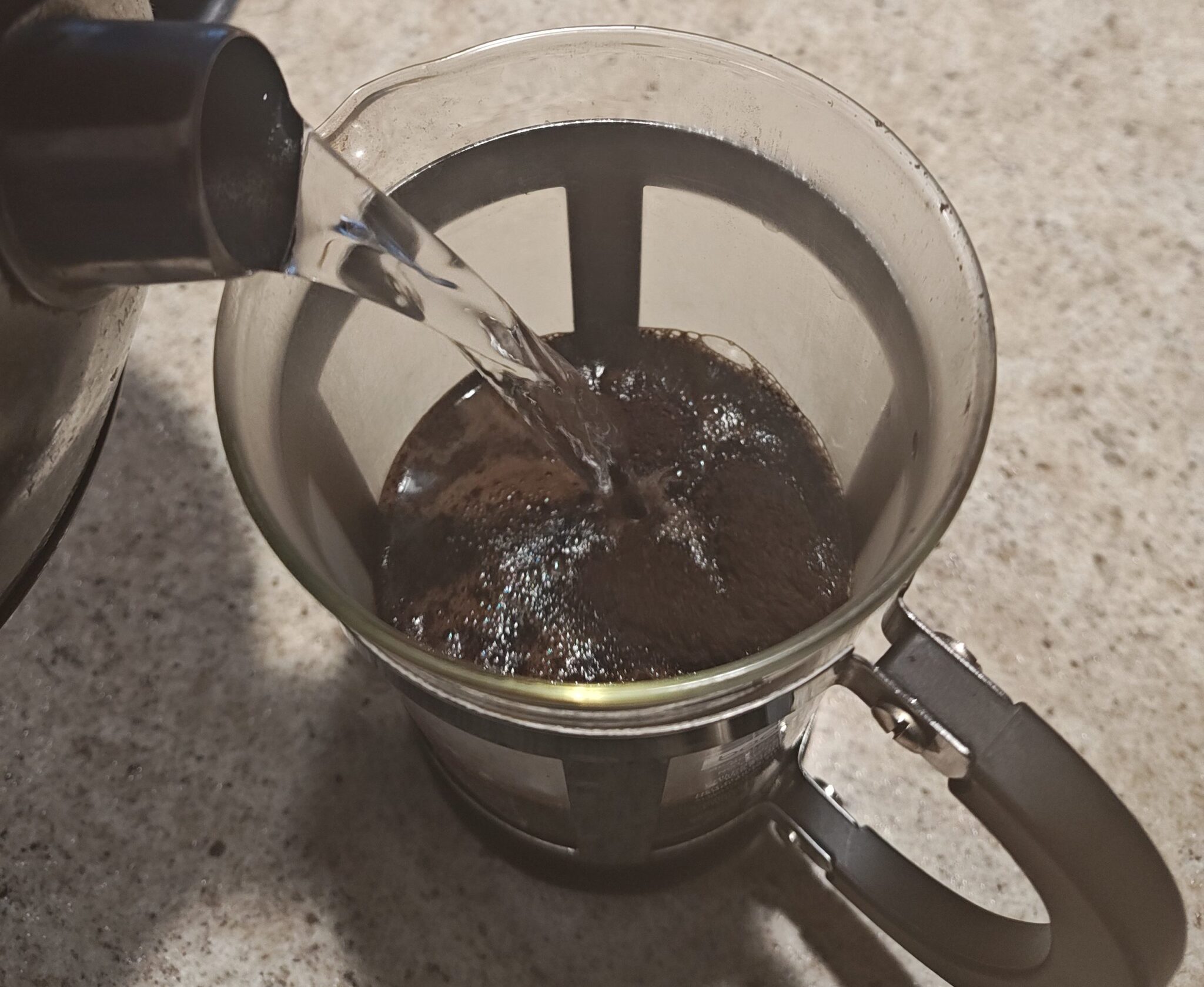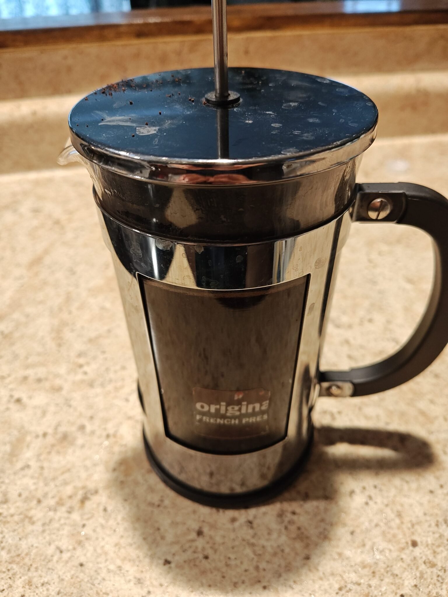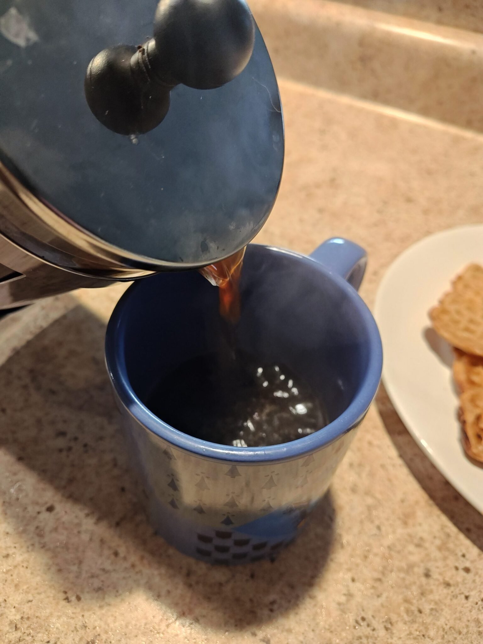 The packaging suggested 1 tbsp per 6oz, and my French Press is roughly 32oz. I did some math and came up with “about 2/3rds cup of coffee. Which is more than I normally use, but I went for it anyway