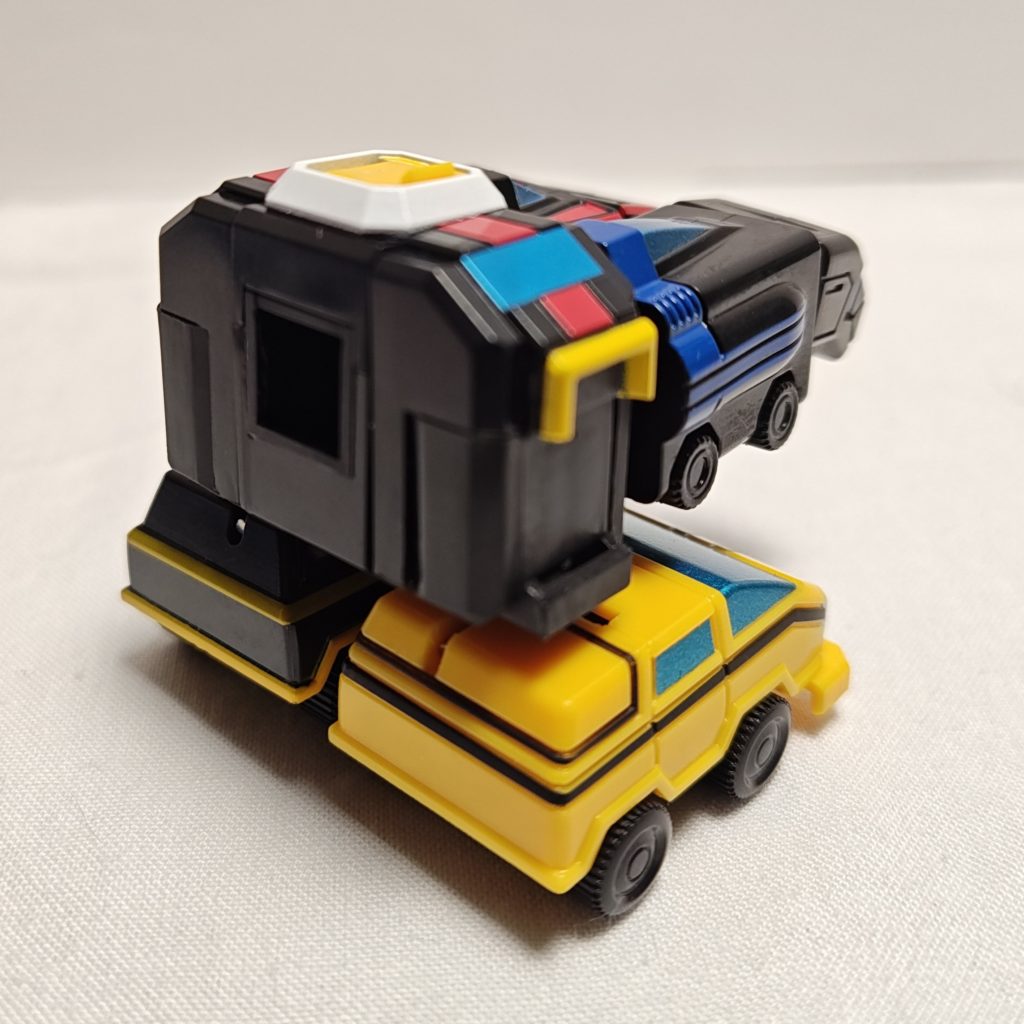 The real fun of this is definitely the combined robot. It’s surprisingly articulated and hides the joints in the blocky vehicles that make up most of its torso and pelvis very well.