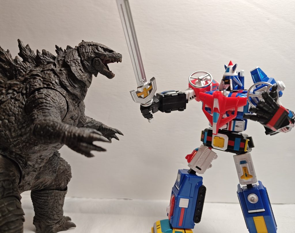 I still really dig it though. And it helps fill out the little collection of similarly sized robots and Kaiju I have been working on building up very nicely. It’s a little smaller than my Die Cast modern Voltron, but not so much that it’s super out of place. I am really hoping it scales well with the Moderoid Lion Voltron I have on the way (which IS a model).