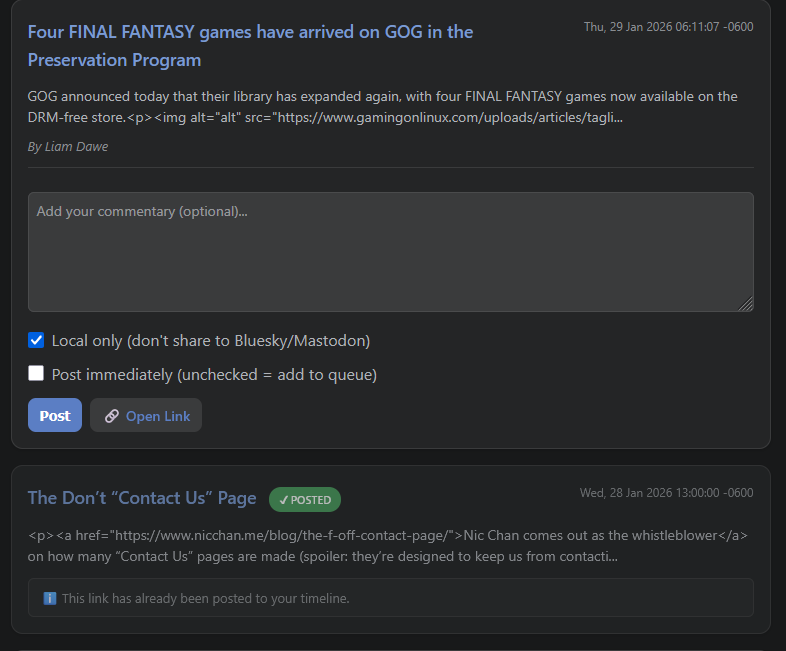 One hang up, it has been double posting posts, but not always. I asked Claude, several times, to comb through and figure out why this is, and each time it “fixed” the problem, but didn’t. So I took a moment to look over the code myself.