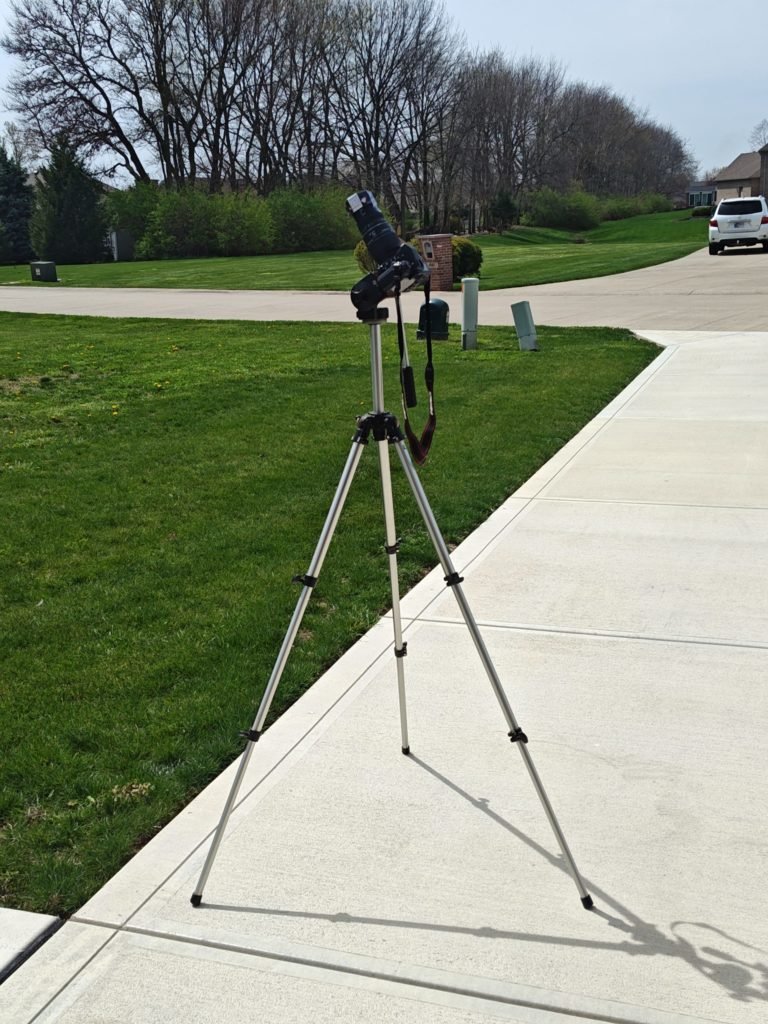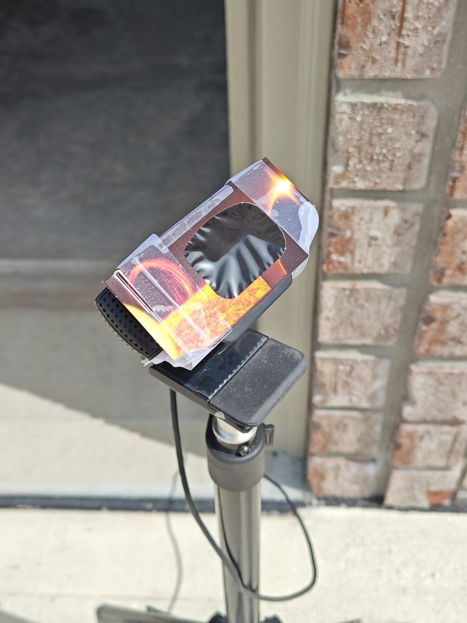Aside from visiting my relative’s new house for the first time, my main draw is trying to take photos of the event. It’s also just, neat to be here. My pics from last Eclipse came out pretty well, and I wanted to give it another go. I also tried a little experiment this time using my laptop and a spare webcam I had to try to take a video of the while thing. This… sort of worked out, but it’s not exactly amazing footage. It was still a fun experiment though.