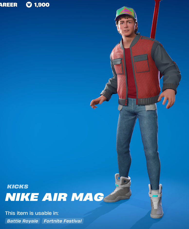 These are of course, the ones Marty wore in BTTF2. Â This is the first pair of kicks I have owned and it pretty much just seals the idea that most skins look better with their default, built in shoes. Â Granted, these are also a bit large and goofy. Â They do look ok on Marty.