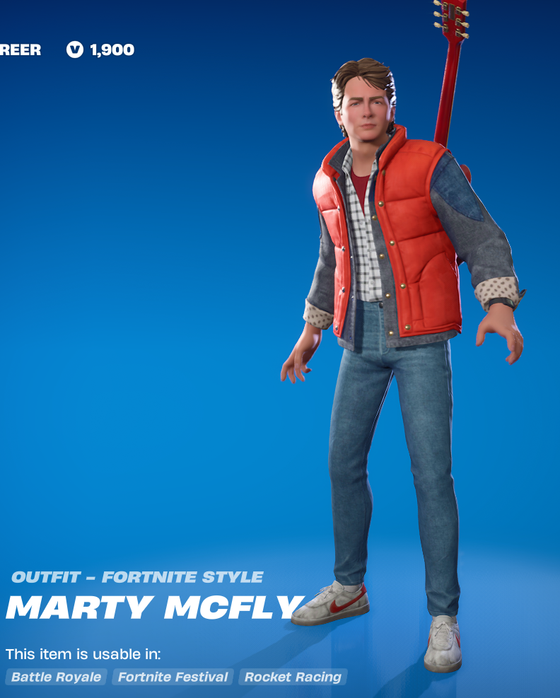 Actually there are two camcorder wielding skateboarders in the pass, which is also a little amusing, because the second collab skin is Marty McFly from Back to the Future. Which is also almost more random than The Bride. I suspect there will actually be some vague plot elements related to BTTF after the holiday event ends, later in the season.