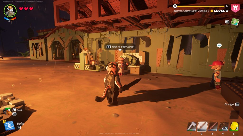 Everything centers around upgrading your village, which lets you gather more and more villagers, which are just NPC LEGO versions of popular Fortnite characters. The whole gimmick is a little hazy. To get a villager to stay, they seem to require you give them a bed, which is simple enough, but also that your village be a certain level. They will show up and gather around your central square statue until you officially recruit them. Even when not recruited, they pretty much just act like every other NPC though, defending the village and hanging around the area not doing much.