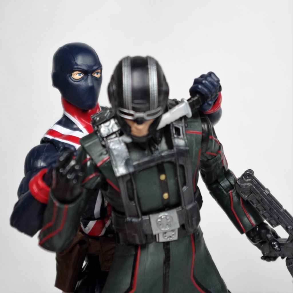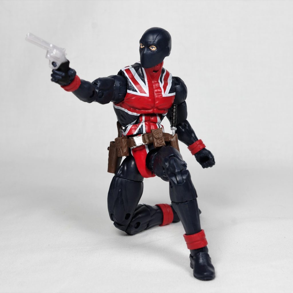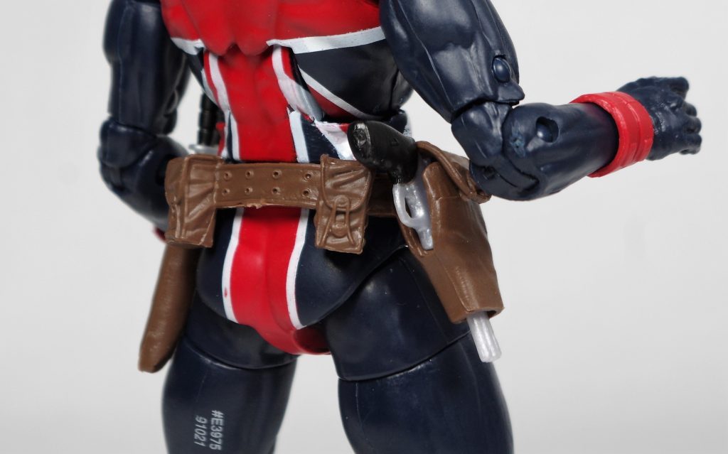 The base figure is pretty standard fare, nothing super detailed on his sculpt or anything. I do rather like the paint job of the Union Jack flag on his outfit. What helps him stand out is his belt, which has both a sheath for his knife and a holster for his gun. Both function well. He only has one set of hands, but they function well for his weapons. Which is kind of the point.