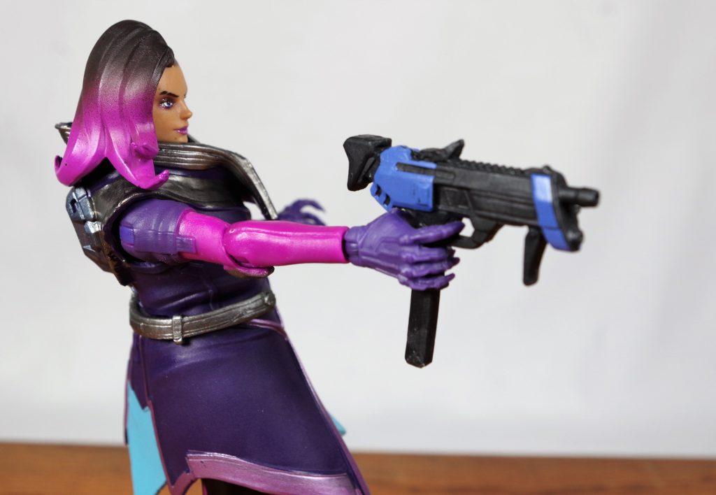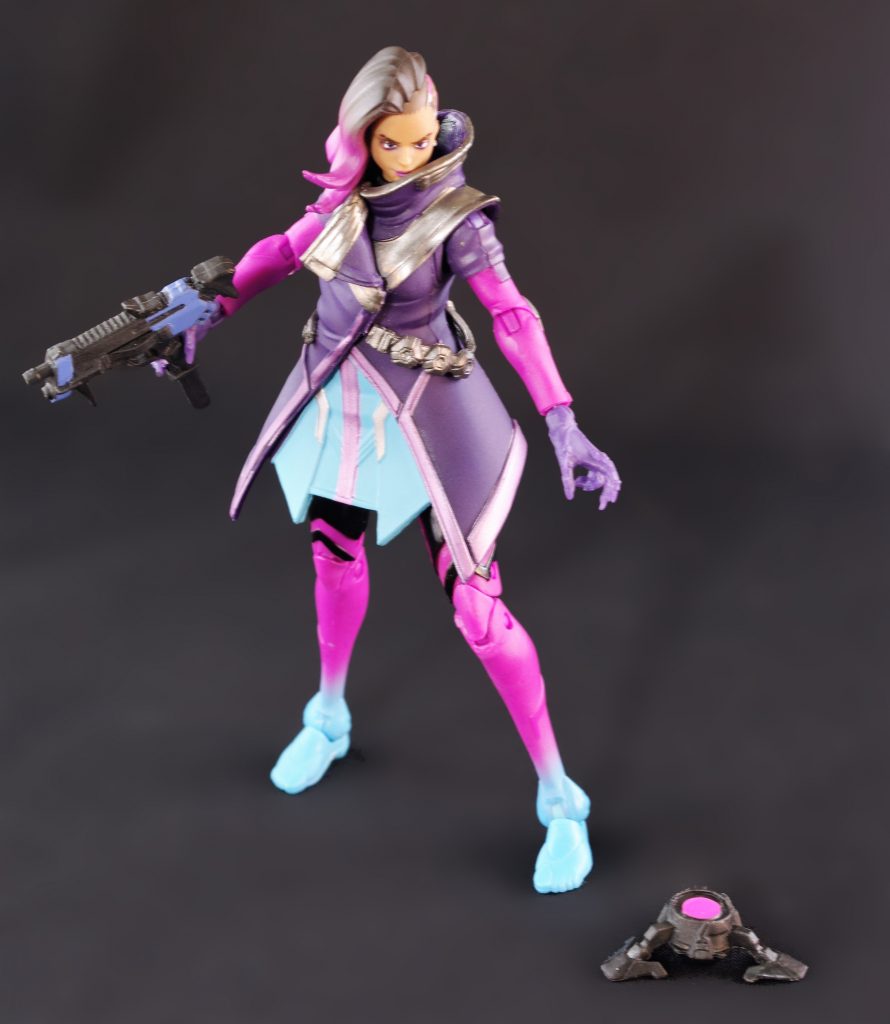 For accessories she has an extra set of hands, a Translocator pod, her Uzi, and a hacking effect that can attach to one of the hands. The accessories are all pretty nice, though the hacking effect is a little cheezy looking. It’s all solid pink plastic and it’s a little short. It’s wholey understandable in it’s design though, since Hasbro probably has a lot of breakage safety rules it has to follow for it’s figures. Anything less and it would break too easily. The effect from the Sombra Nendoroid is really nice, but I also worry that I am going to snap it to pieces anytime I look at it.