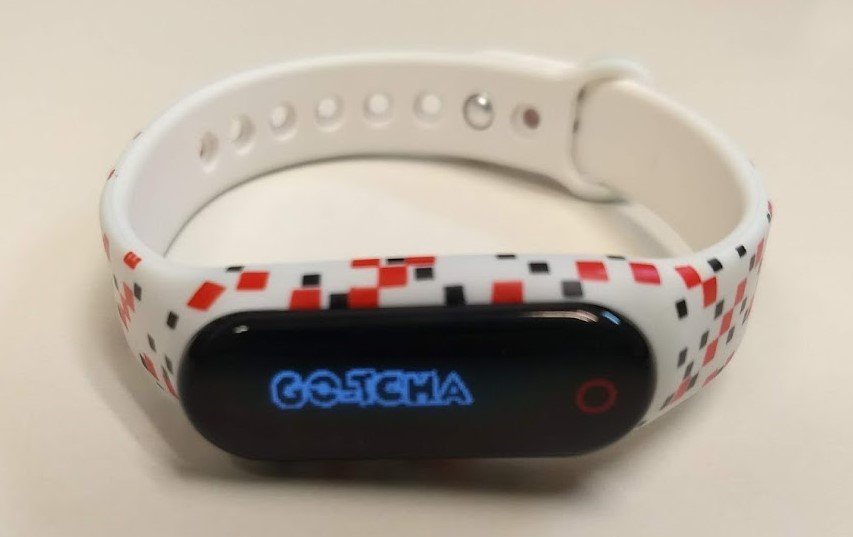 The Go-tcha band itself has a few quirks. It has no on/off function that I can find. So it’s always on. You recharge it by sticking it in a little USB cradle. The Go-tcha itself is maybe a centimeter by a centimeter by 2 centimeters, it reminds me a lot of my old Fitbit flex. There are no ports on it, just two little contacts for charging. It has one touch sensitive area on one end of the display. There are little animations that play on it as it does things. You can buy third party bands, which is good for two reasons. One, the band that comes with it is this speckled red white and black thing that’s ugly as hell. Two, the band that comes with it is effectively child sized, it doesn’t fit at all around my wrist. I just carry it in my pocket. A word of warning on this, I have found that having other things in your pocket (like pocket change) can accidentally change the settings on the unit. It’s best to keep it in the band, even if you aren’t wearing it because frankly, it’s easy to loose, it’s so small.