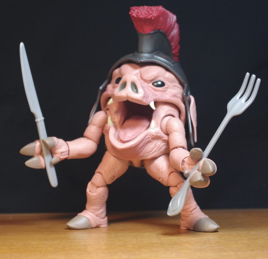 I ended up with the regular version, which is just the pig with it’s weapons. Which is fine because that’s all I really care about. Something notable, despite the shape, the figure works pretty well to keep itself upright. It’s a big heavy ball with legs, it should be a balancing nightmare.