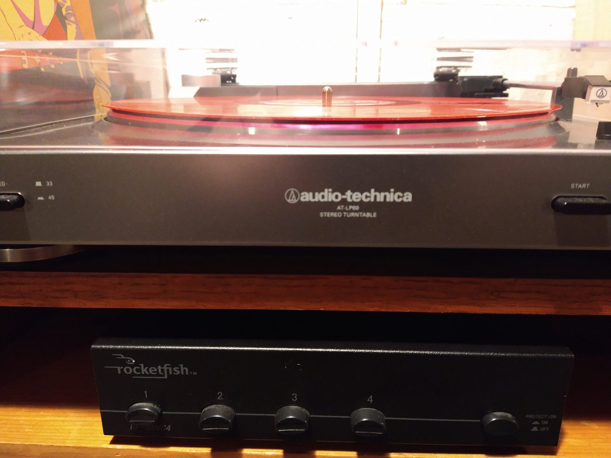Lastly is my record player, which I bought at a garage sale. It works pretty well for my needs though. It’s an Audiotechnica AT-LP60, nothing fancy.