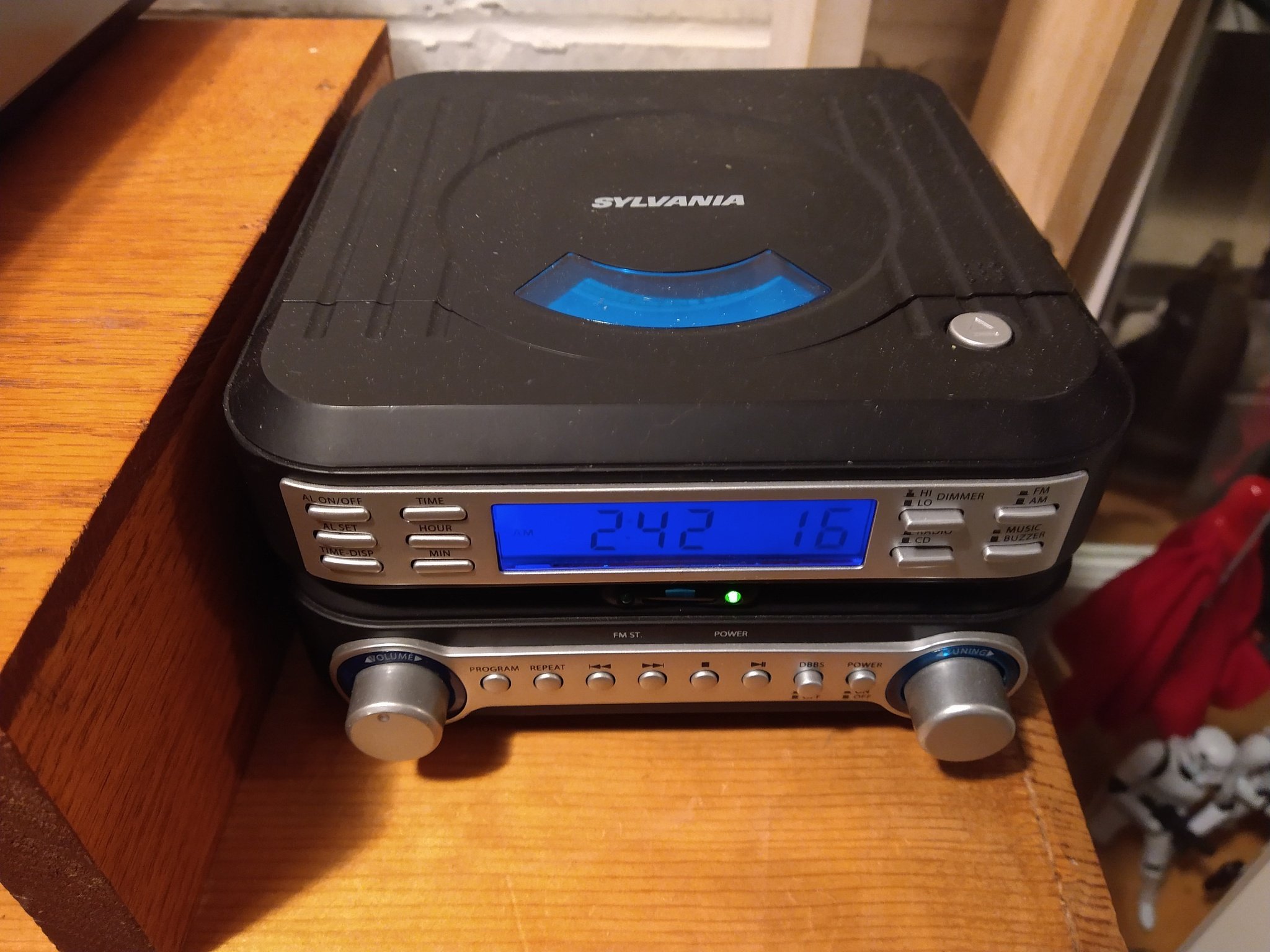 Connected to the Mixer are the input options. They can be played all at once, since it’s a mixer not a switch, but I’m not sure why you would want to. There is a Raspberry Pi hidden under the little shelf that connect to my music library and can be controlled remotely via a webpage. I have this kind of mediocre CD player that I’ll probably replace one day with something better, but still compact. Even a portable CD player would probably work better. There is also an Amazon Echo connected, but since Amazon jacked up their music service, I don’t use it as much. I also have an aux cord hanging off for connecting to a phone.