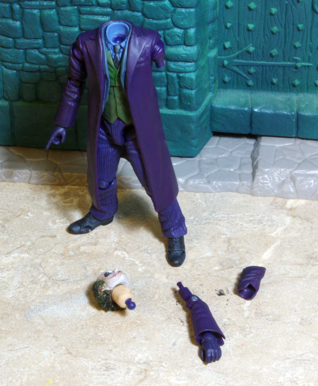 There’s a bit of hindrance to articulation by his coat, though the Joker, especially this iteration of the Joker, is pretty slow and shuffling in his movements anyway. He’s not exactly an athlete or a ninja on any level.
