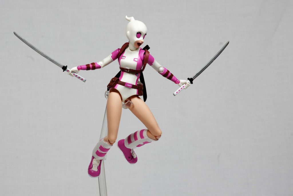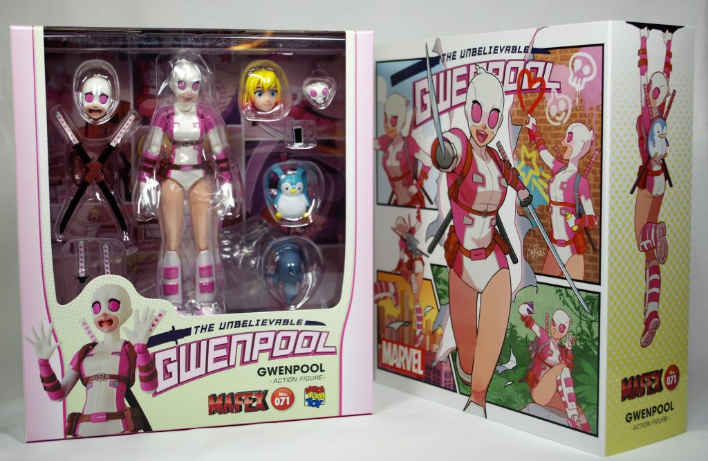 So, I don’t really do “Figure of the Year” stuff, but if I did, Mafex Gwenpool would very likely be my “Figure of the Year”. I can’t express how worried I was about this figure leading up tot he release. All of the previous Mafex figures I have picked up had some sort of issue, most often, arms or heads that don’t stay attached well. The sculpts on the figures are all great, but the quality is a little dodgy. I’ve mentioned before that as much as I like Mafex being cheaper than say, Figuarts, I wish they would accept a bump in cost if it meant they had better quality control. It seems like this is starting to be the case across the board, because I’ve noticed a bump in the price on their figures, but I have also noticed that the join tolerance issues are pretty much going away.