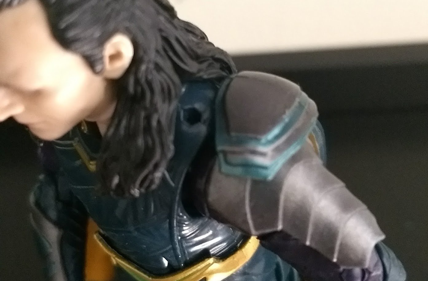 Anyway, there was a figure released years ago for Avengers of Loki but it was kind of mediocre and the likeness wasn’t super good. Thor Ragnarok is getting pretty good treatment for a movie line, a few new Thors, Hela, Valyrie, the new Gladiator Thor, and of course Loki. He definitely has a better likeness from the previous Loki, Hasbro is doing something new with it’s movie lines because all of the heads are looking really good lately, with a good resemblance to the actors. He’s not wearing his older gold armor anymore, so he’s not necessarily a great straight replacement for Avengers Loki, depending on what you want from an MCU Loki. The new armor is still pretty decent and matches his new look for the new movie.