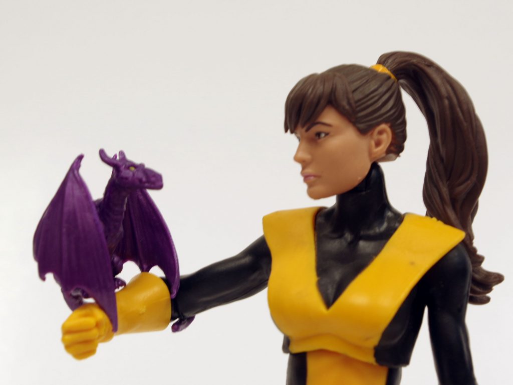 Kitty Pryde also comes with an accessory in the form of her little dragon buddy Lockheed. Lockheed is really great in his execution. His overall shape from his wings to his tail added with the rubbery plastic he is made of allow him to easy perch on Kitty’s arms or shoulders easily without the need for any ugly pegs or clips. It makes him look very natural on her and though it’s not a rock solid connection, it’s stable enough for some movement while he is attached to her.