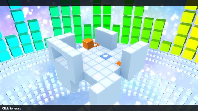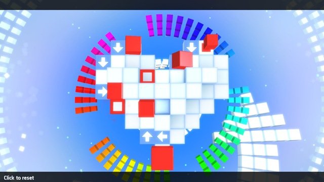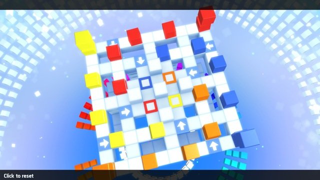 The three dimensional aspect comes heavily into play in the later levels. You’ll be required to rotate the view around to get all of the angles and often trial and error is needed to discern the proper placement of the directional tiles on the board. Often you’ll want to drop a cube off a cliff to a lower level, just so long as it doesn’t fall off completely. If you are good at thinking in multiple dimensions, including time, many of the puzzles will come off as pretty obvious and the game is a bit easy at times. If you get stuck however you can use one of two hints. One will tell you which of the tiles you’ve placed are correct, the other will tell you which spaces are supposed to have tiles on them. Neither will give you an instant solution, but they are both useful if you get stuck.