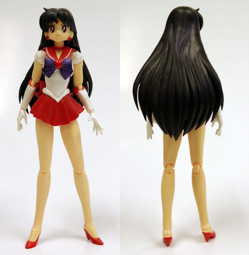 Figuarts Sailor Mars is much more of a departure in design than Mercury was to the original Sailor Moon. The core Fuku outfit is still there but she wears slippers instead of long boots. She also has longer hair, which includes some neat articulated bits that allow it to “flare out” for dramatic effect.