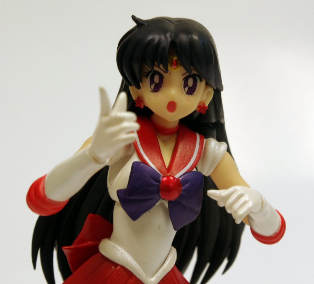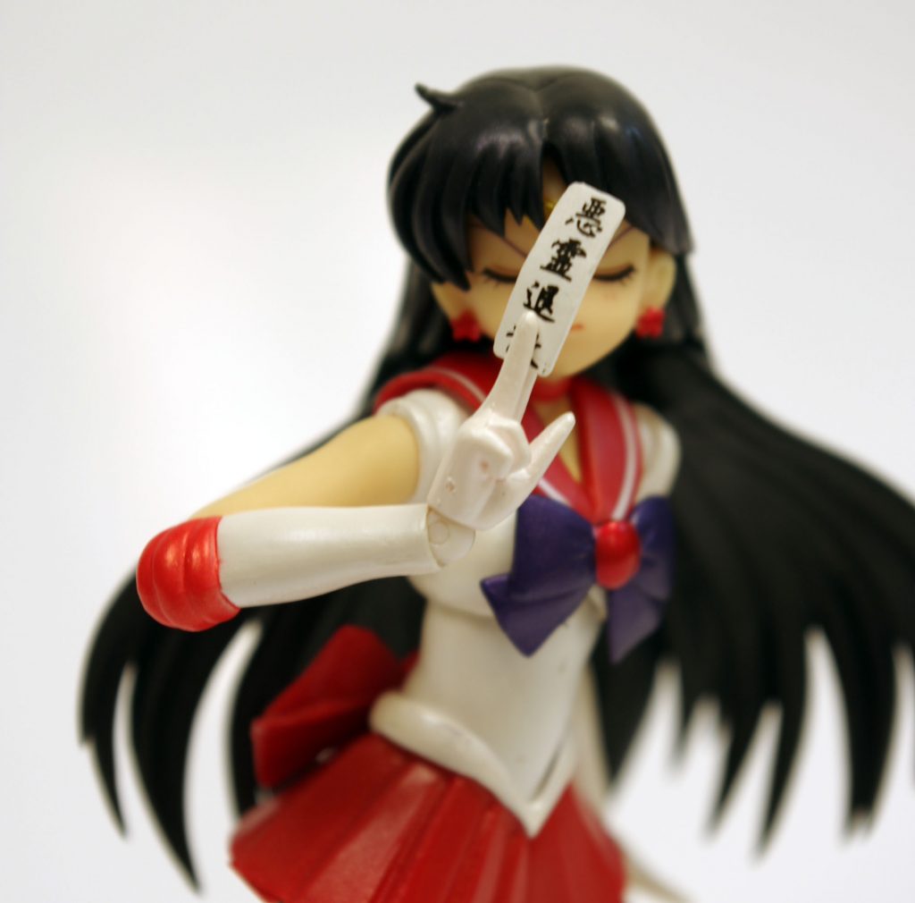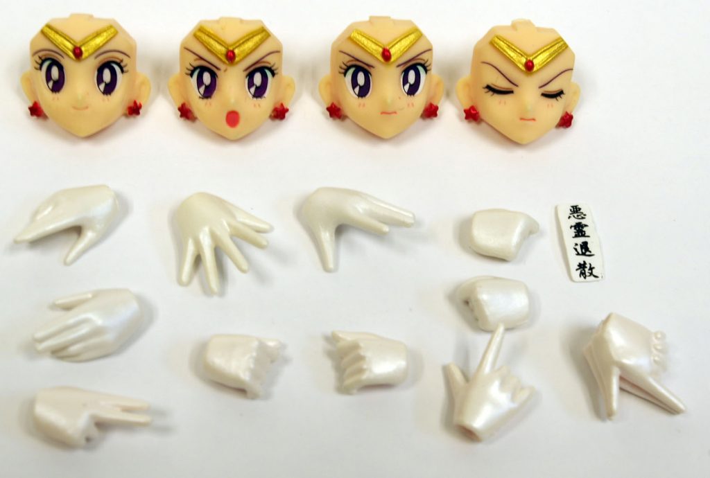 She does start to get into a bit of reuse on the hands from Sailor Moon and Sailor Mercury, though there are also several new unique hands. Aside from hands and faces, her only other accessory is a tiny Ofuda paper charm. It’s not actually made from paper, it’s plastic, but it’s a depiction of her paper slip she uses for some of her attacks. She also includes a special hand to allow her to hold the paper between two fingers as she does in the media.