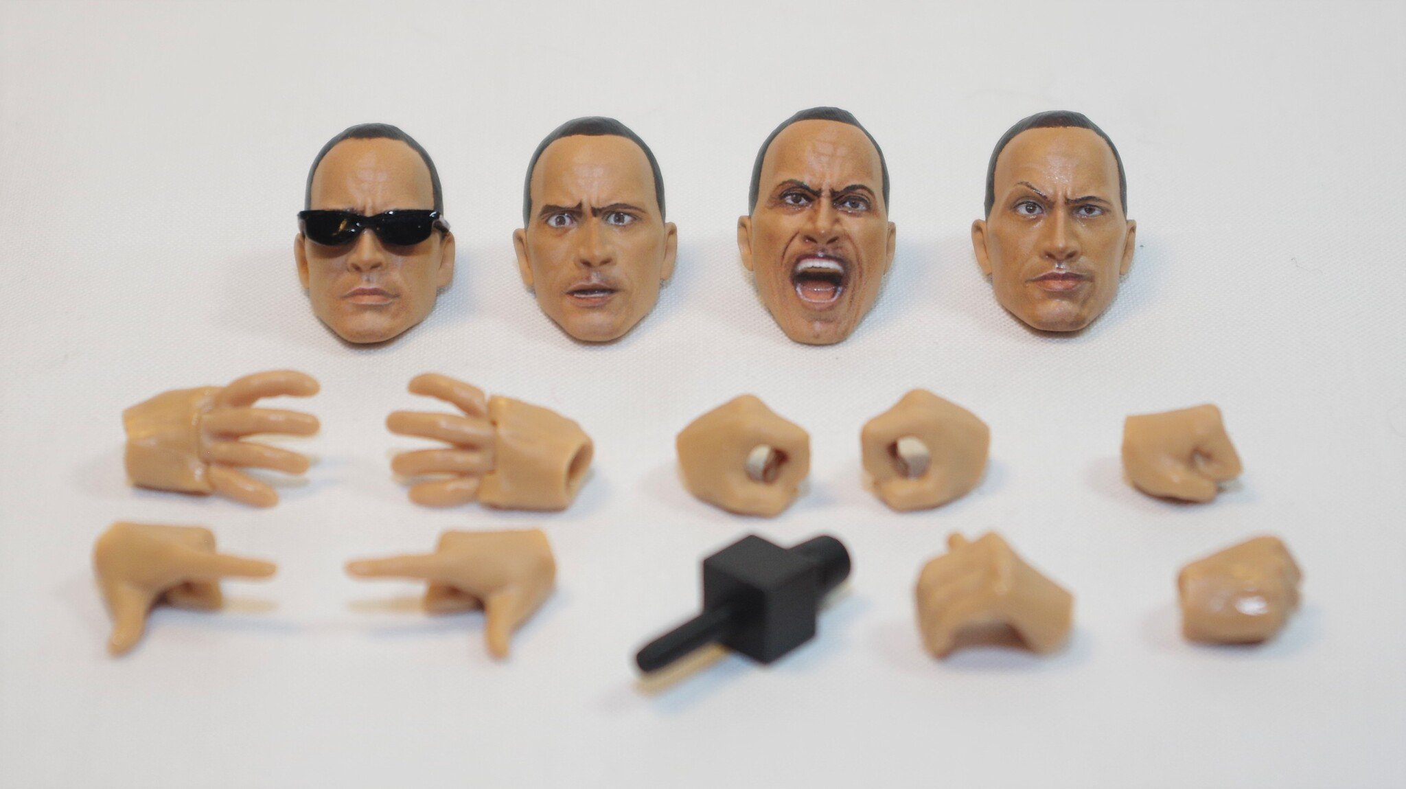As far as Figuarts go, he kind of feels like a mixed bag. The face sculpts are great. They look like the rock and convey a lot of nice goofyness and character. Even without relating it directly to The Rock the wrestler, they still show off several of his “signature looks”. He is also very poseable, even for a Figuarts toy. He even has a jointed set of hands.