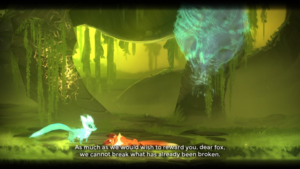 The basic premise here, you play as a Fox spirit, working to aid another spirit in restoring the powers of the four seasonal spirits and areas. There is a central hub and 4 areas that branch from it, but you also will need to revisit each branch a few times to complete the overall story.