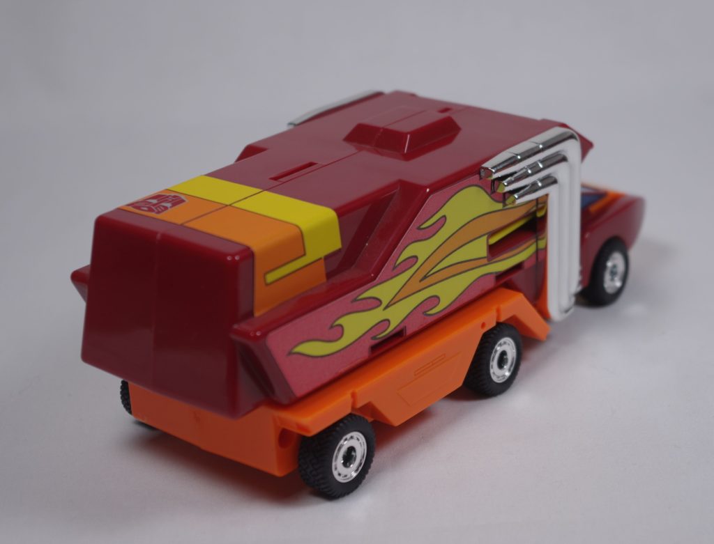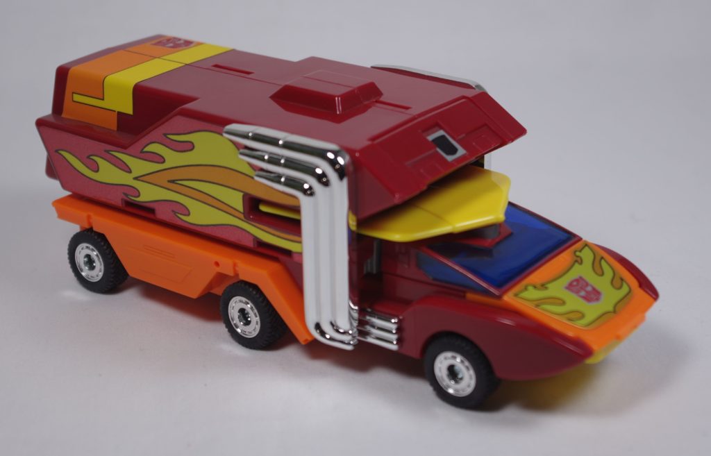 It’s also huge. He dwarfs the Autobot cars and is pretty large even when compared to modern deluxes. The whole thing is pretty solid and the 6 rubber tires are really cool. This mode is the reason to buy Rodimus.