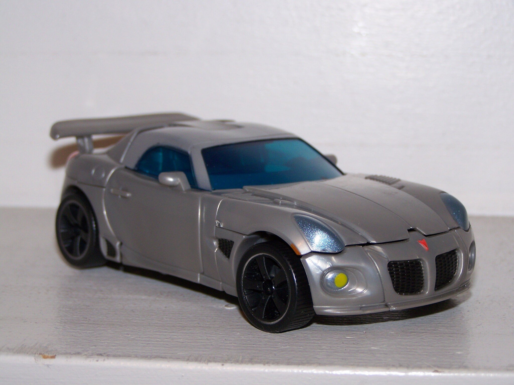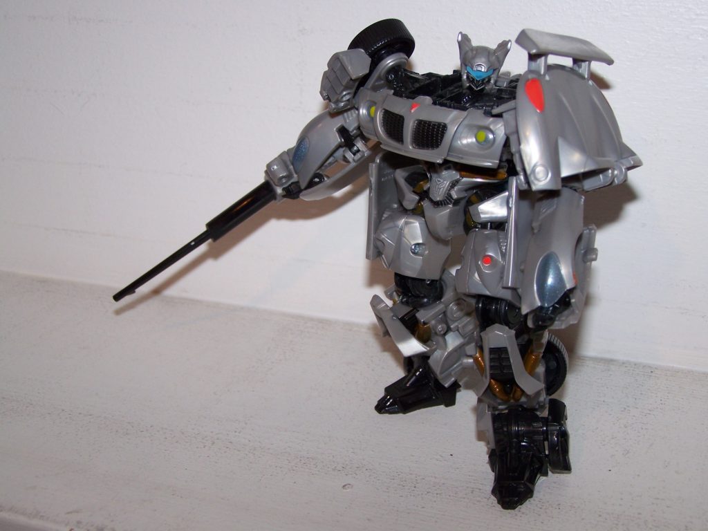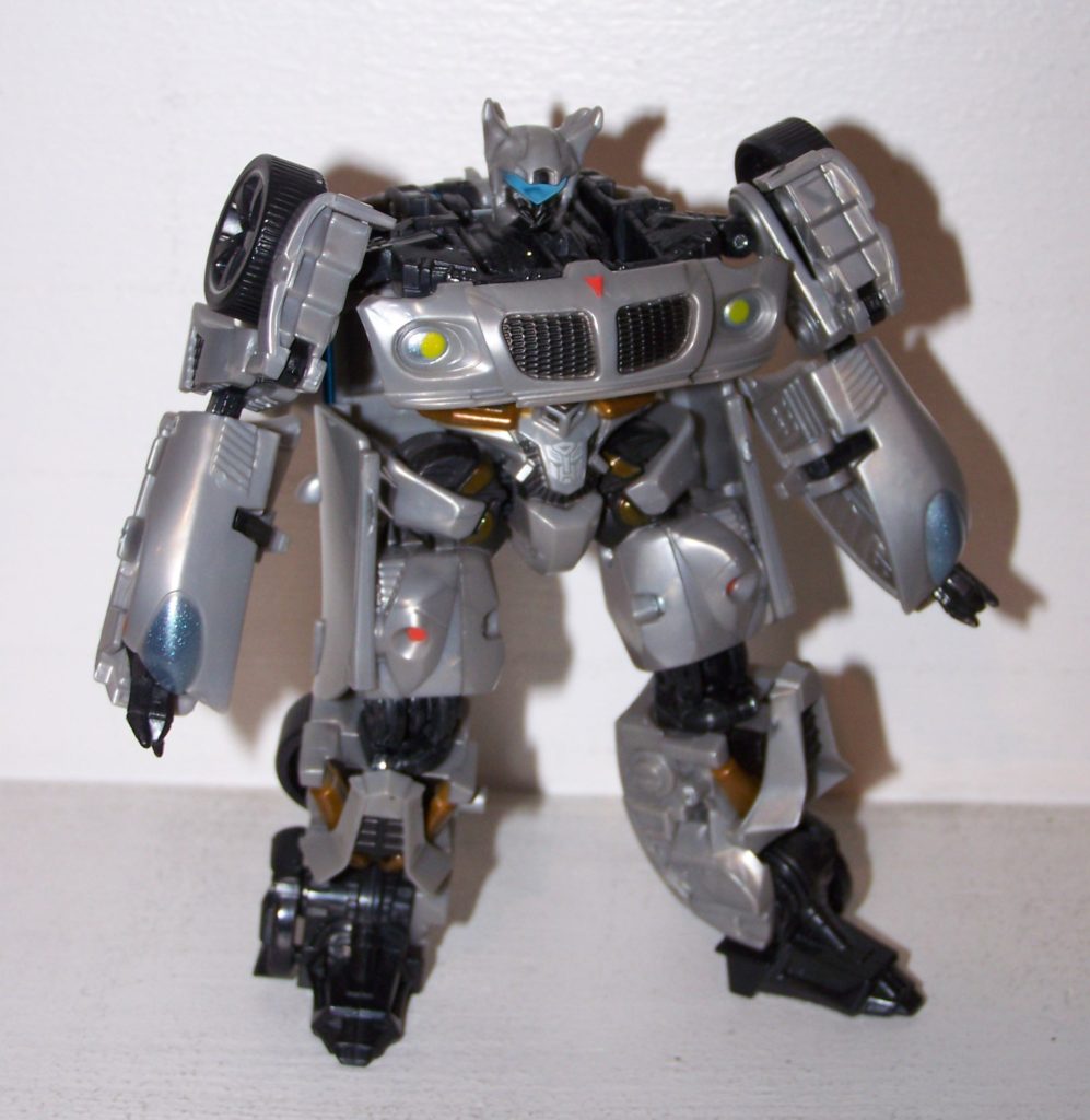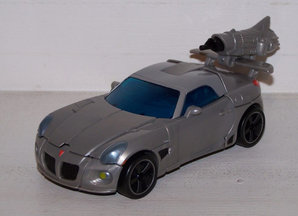 Thankfully, Hasbro has gotten several of their old trademarks back (or use a loophole such as “Autobot Jazz”). And they are pushing them out in force with the movie. Not only are we getting a new Bumblebee but a new Jazz as well. While Bumblebee doesn’t much resemble his G1 self, Jazz isn’t too much of a stretch. The original Jazz was a sporty Porsche 935. This new Jazz is the slick new Pontiac Solstice. While it would have been nice if the movie version was a Mazda RX-8 like his Alternators counterpart, the Solstice has a body style that’s not too far off from either the 935 or the RX-8. The sleek stylish curves work well for the stylish urban character of Jazz. Rumors has it there’s a G1 styles repaint in the pipeline as well and it looks really good on this car. The parent company of Porsche and Volkswagen (the same company BTW) won’t let their vehicles be used for “war machines” and in this case, Hasbro has compensated well (Bumblebee less so but that’s for another day).