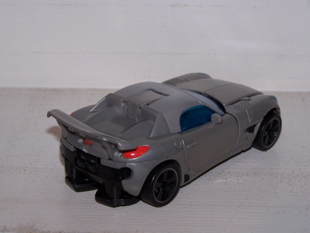 The weapon is a bit of an oddity. It’s clearly designed to be a sniper rifle of some sort but it’s labeled as a sword. Yeah, sword. There’s nothing sword-like about a long tube with a sight marker on the end of it. The way it attaches to his arm however it could be either. Perhaps it’s meant to represent some sort of light saber type weapon but if that’s the case I can’t imagine why they didn’t make it out of colored plastic. We’ll never know the truth until the movie is released. The weapon is also designed to attach to the spoiler in vehicle mode as some sort of huge cannon/jet thing but the effect is nothing short of ridiculous.