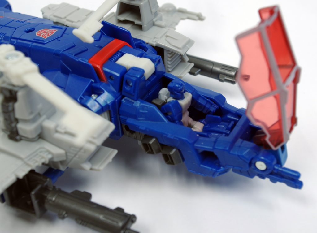 Like most of the original Headmasters, Highbrow hasn’t gotten a proper update in a while. There was a pretty neat Highbrow back in the Hunt for the Decepticons sub-line of Revenge of the Fallen, though his alt mode for that line was a Lockheed P38-Bomber style plane, and he was mostly green instead of his original blue and white. It’s a neat toy mostly for using a cool alt mode, but it’s not very Highbrow and it wasn’t a headmaster.