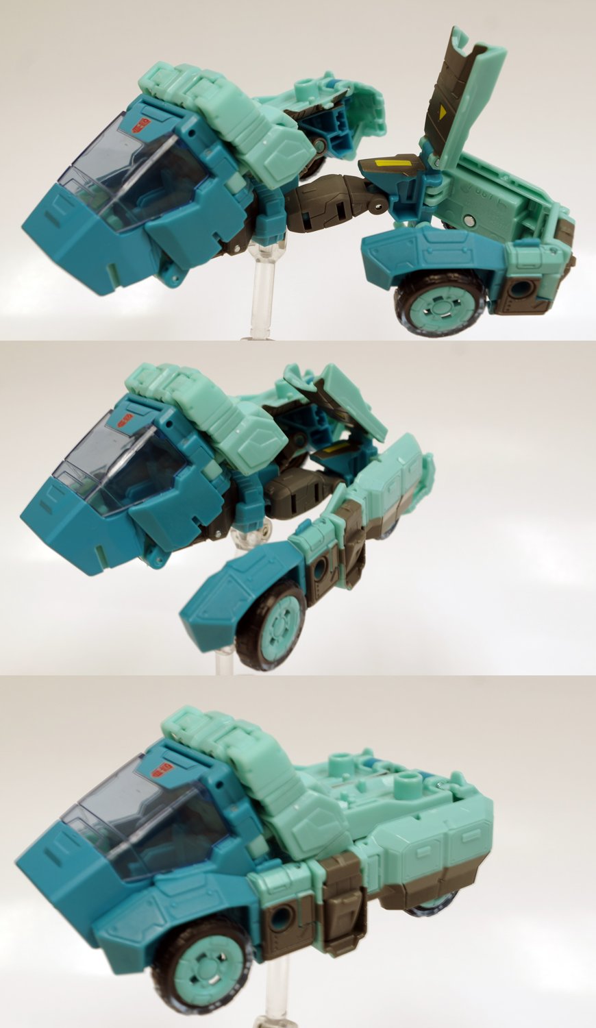 Kup maintains his dopey Space Pick Up design this round, though he takes some queues from Transformers Prime’s Kup with the truck bed. His guns can fill in the gap to create a nice little block of technology engine looking junk that he can carry around. They still look like guns, but it does help to keep his alt mode from looking funky.