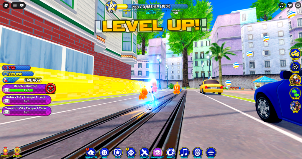 What was more surprising, after enough experience levels, you unlock another stage. I believe there are 5 total stages, but the wiki I found online lists a different stage 4, which was City Escape when I played. Its mostly worth mentioning because this stage has a looped grind rail that is some trolley tracks, and by jumping on the rail and just, letting it go, you can AFK all of the basic level grind of this stage, very quickly.