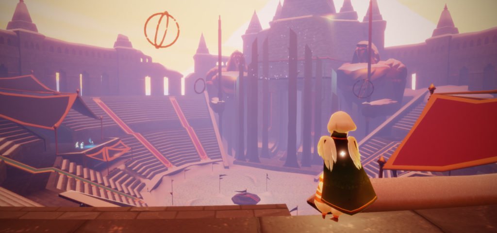 Just before the end is the Colosseum. It’s a pretty straight forward zone. There are several spirits in the area, including a couple of stages for the Skater Spirit (discussed more in the village). There is a Winged Light that is easy to miss hiding at the top of the left giant statue next to the exit. This place is also home to the simplest spirit in the game, there is a fan in the stands that has ONE stage you simply activate it and follow it to one place and it’s done. You can exit to the Village from the Colosseum as well through the exit up in the stands.