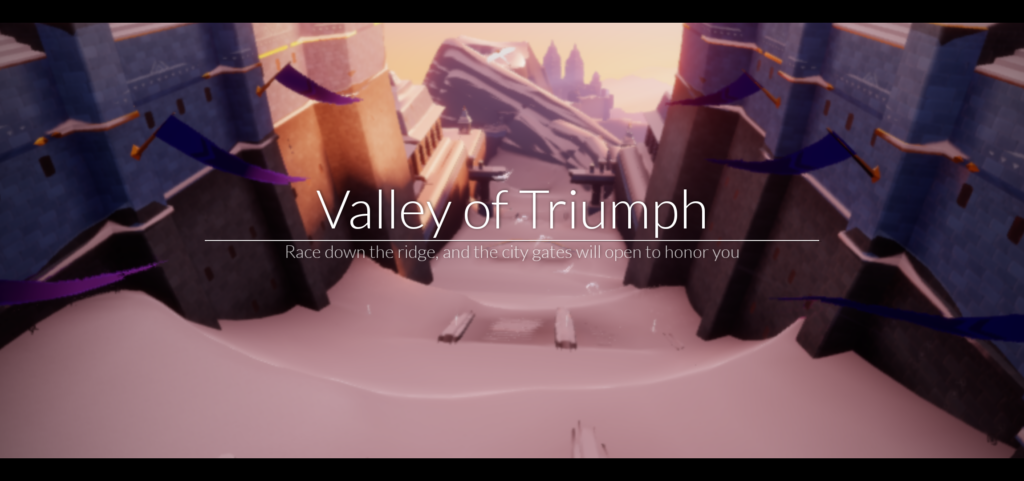 The Valley of Triumph is the fourth area of Sky. It can be a bit tricky to navigate through as it contains a lot of “one way” paths. At least half of it’s paths are essentially one way, so navigating the entire thing will take several return trips. The first split occurs right at the Social Area starting zone. The main path leads to a downhill slide, a one way path, and the other leads through a cave to the Village, which is also, a one way path.