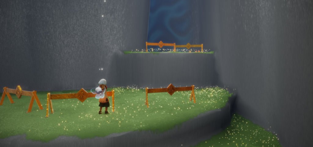 From spawn, going up to the left, then back towards the entrance leads to a crack tunnel that can be traveled through. This leads to “The Secret Zone”. It’s neat to experience blind, so I won’t go into a lot of detail here, but under normal circumstances, you can only get there while wearing the supporter cape. During holiday events, there will be a special spirit that will take you through. This is the area where events take place. Also notable, this hand holding counts for the daily quest “Hold hands with a friend”. Which can be tricky to get sometimes.