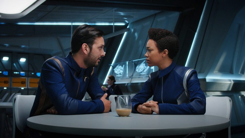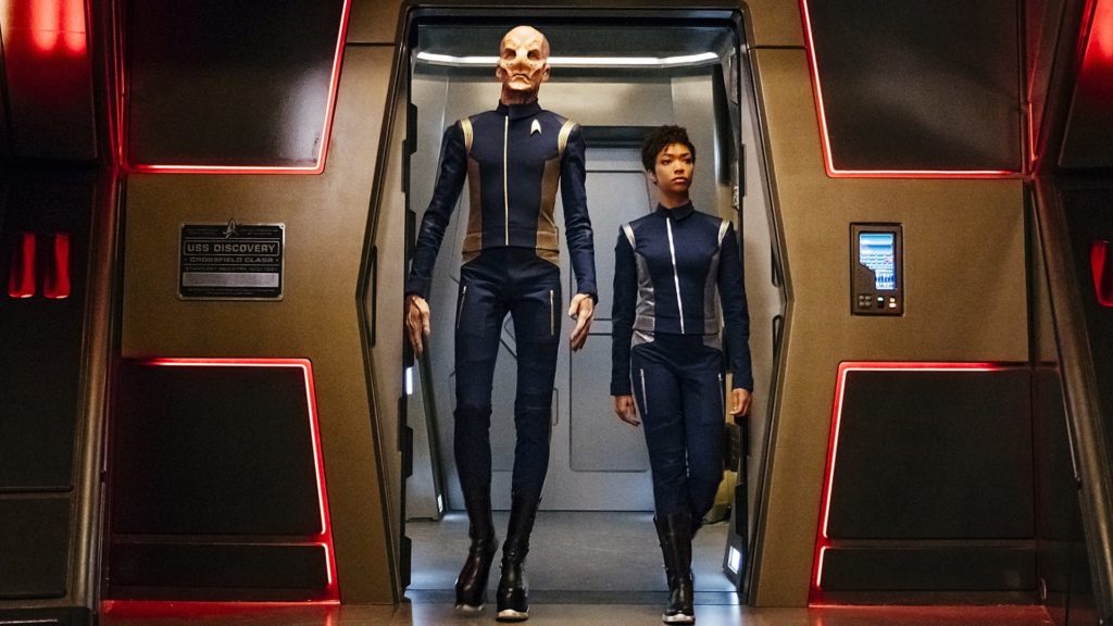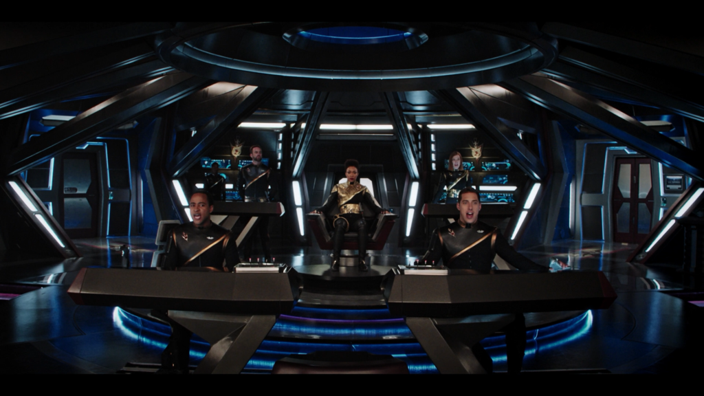 The show also eschews its Trekisms in other ways. USS Discovery does not seem to have a Chief Medical Officer, or Chief Engineer, or Chief Science Officer. Or at least, they are not main characters. The crew complement and ship layout are also confusing. When doing Spore Jumps, the saucer parts of the ship start spinning, do people have quarters in these areas? Sometimes they do these weird internal Turbolift shots that also make the ship seem much more hollow than it actually is. The aft section seems to be like 90% shuttle Bay. It’s just, really not clear. Once again, not really sticking to the “grounded” parts of Star Trek sci-fi