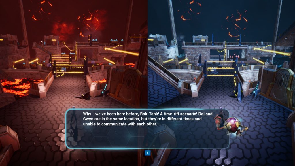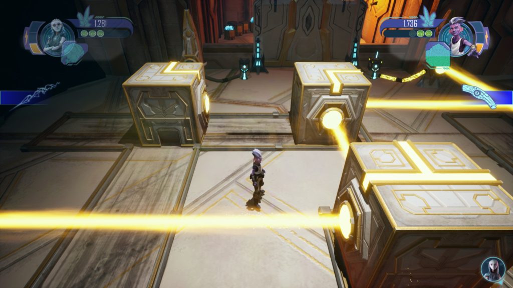So anyway, gameplay is kind of interesting, because its an action game, but you control 2 characters. Its kind of similar to the LEGO games in a lot of ways. You can also plug in a second controller and play it as a Coop game. I played it all solo however, and swapping between each character was smooth and easy, though overall, Dal’s skill set is a bit more useful.