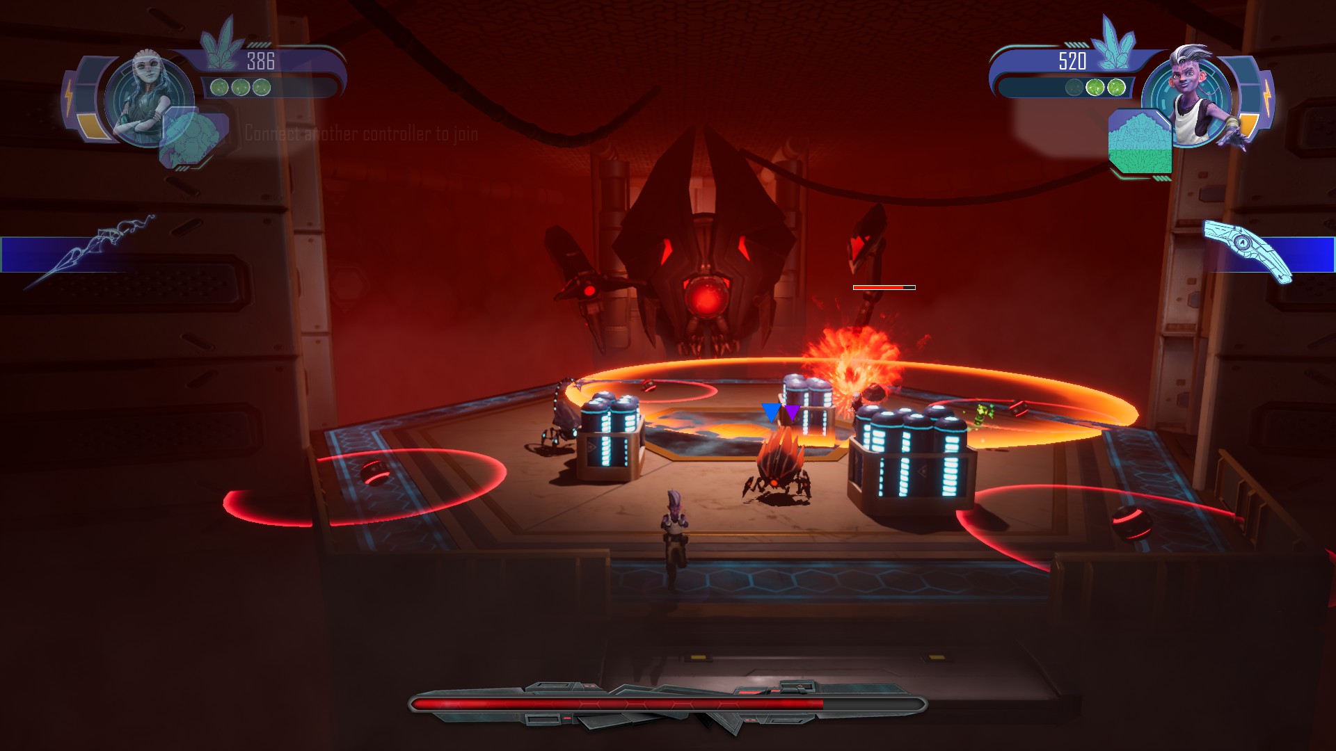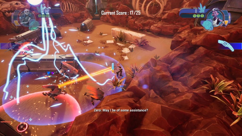 And you will need these skills for the puzzles, which basically make the game. There are combat moments, but the combat is slow and repetitious and a little clunky. The game throws alternative weapons at you to help give some variety, but I found the base weapons (Dal has dual phasers, Gwyn has a sword), were the most versatile and easiest to use. All I really wanted for upgrades was better heat control on the phasers so they would cool down faster between shots. The enemies are all variants of these little crab triangles called Watchers. Some are slightly larger and have different attack patterns, all of the fights are just, swarms.of enemy waves while you are locked into a space. You can’t avoid them either.