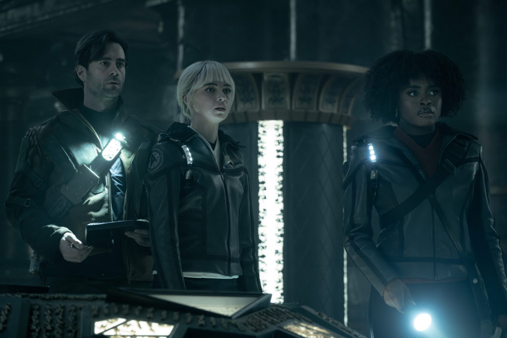 Episode 5 sets up for the season finale, and continues the Batel plot a bit. Korby and the away team are exploring some ancient ruins and they stumble upon something much more complex. It turns out its a sort of multi dimensional prison and its housing a great evil. Poor Gamble gets hit very earlt, blasting out his eyes, which is a little rough, and returned to the ship. The rest of the away team gets trapped inside and have to solve some puzzles to escape. M’Benga basically discovers that Gamble is dead, Gamble kind of goes feral and starts attacking people. Batel shows up and the presence of Gamble triggers something inside her and they fight a bit before they manage to trap Gamble using the transporter.