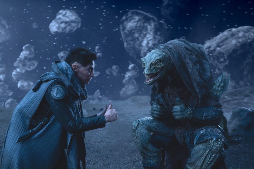 Turns out, Ortegas was not alone, she encounters an injured Gorn. After some hesitation, and the fact that the Gorn kept rescuing her, she accepts that they must work together if they are to have any hope of rescue. Which they manage, until it all goes south because the rescue team shows up, short on time, and La’an, who hates the Gorn more than anyone ends up killing Ortegas’s friend. At the last minute before beam out, Ortegas is met by a strange entity, a member of the Metron Spiecies.