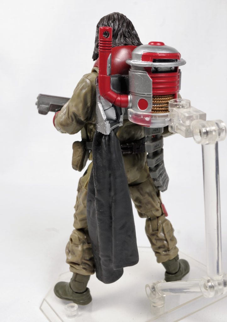 The basic sculpt is pretty nice, his outfit is interesting and he has a nice stocky build that’s not too common in Star Wars figures. He also sports a pretty hefty backpack to support his heavy gun. While the backpack is a cool design, it really hinders this figure all around. It’s very heavy and Baze can hardly stand up on his own without falling over. His bulky design already hinders his pose-ability to begin with.