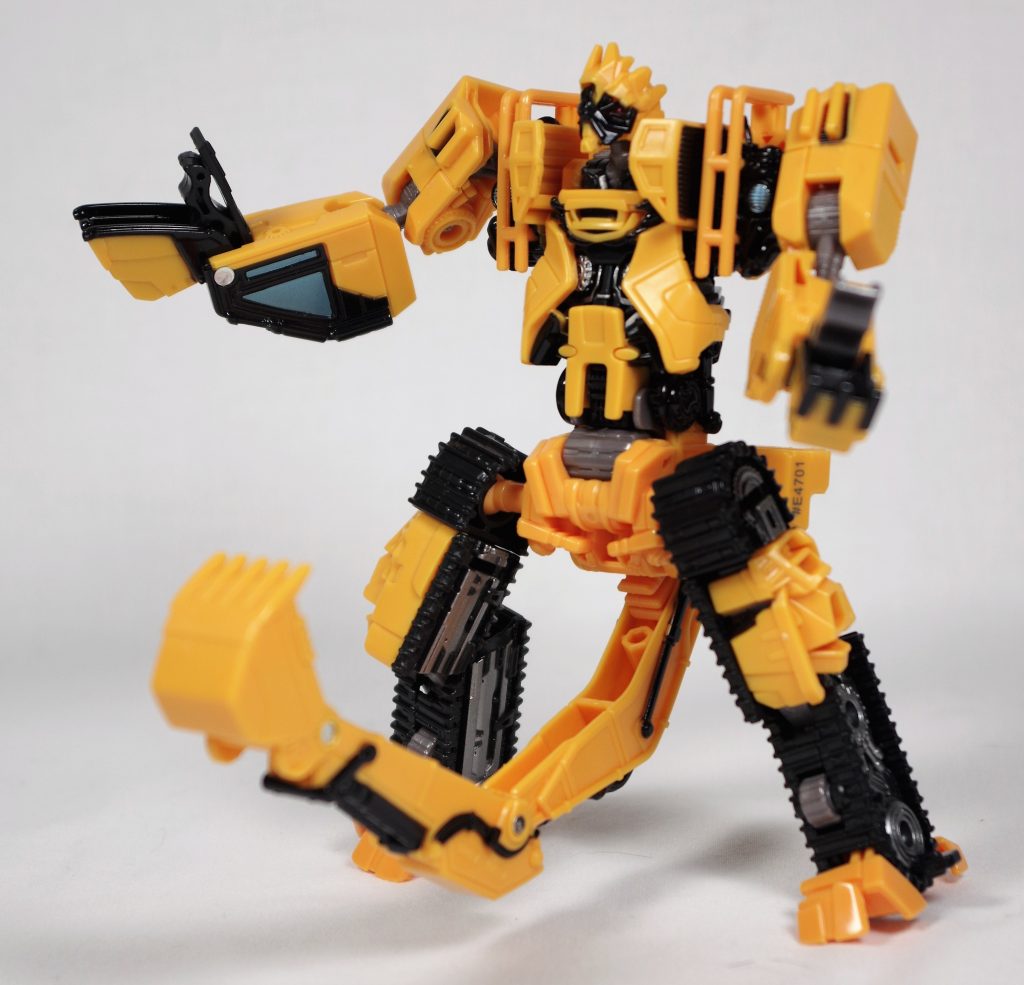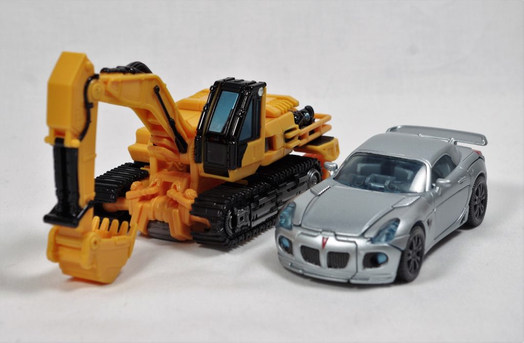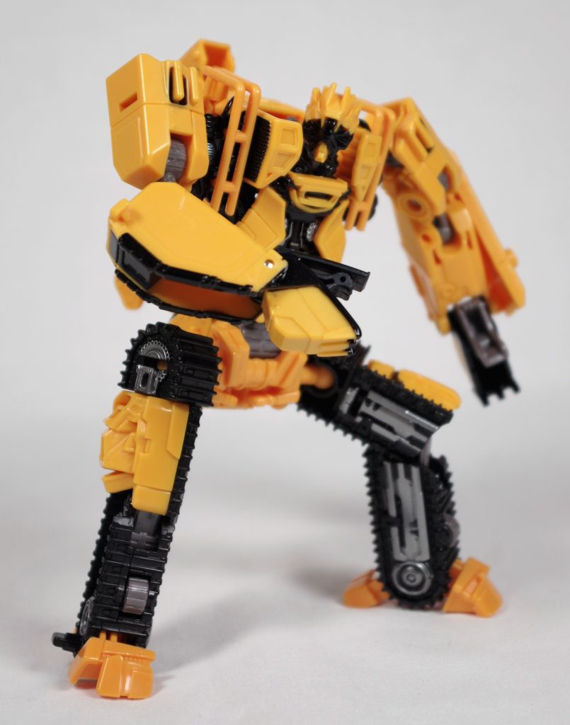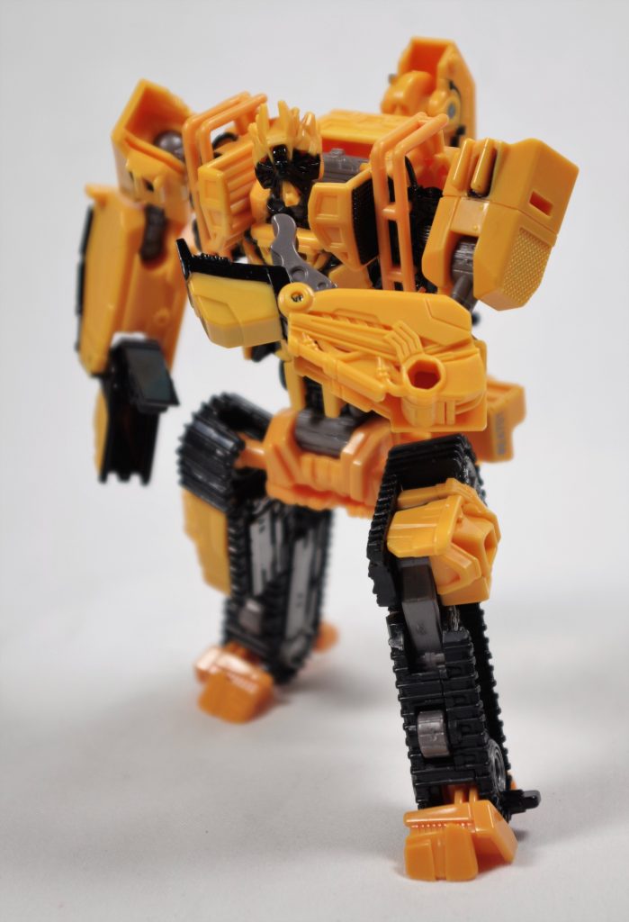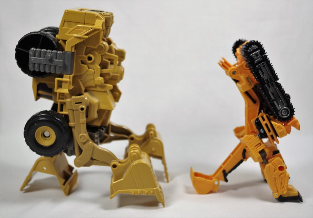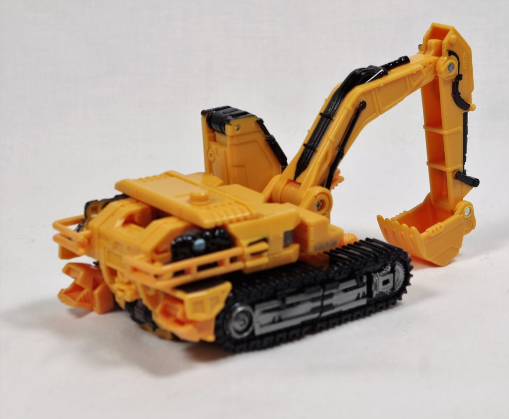 Scapmetal turns into a small excavator. The primary driver in Studio Series is robot mode scale so the excavator is pretty small, but there are some small er versions of this particular vehicle out there. The vehicle is a little small compared to old style Deluxes but looks alright next to other Studio Series. The transformation doesn’t allow the top to rotate independently of the treads unfortunately.