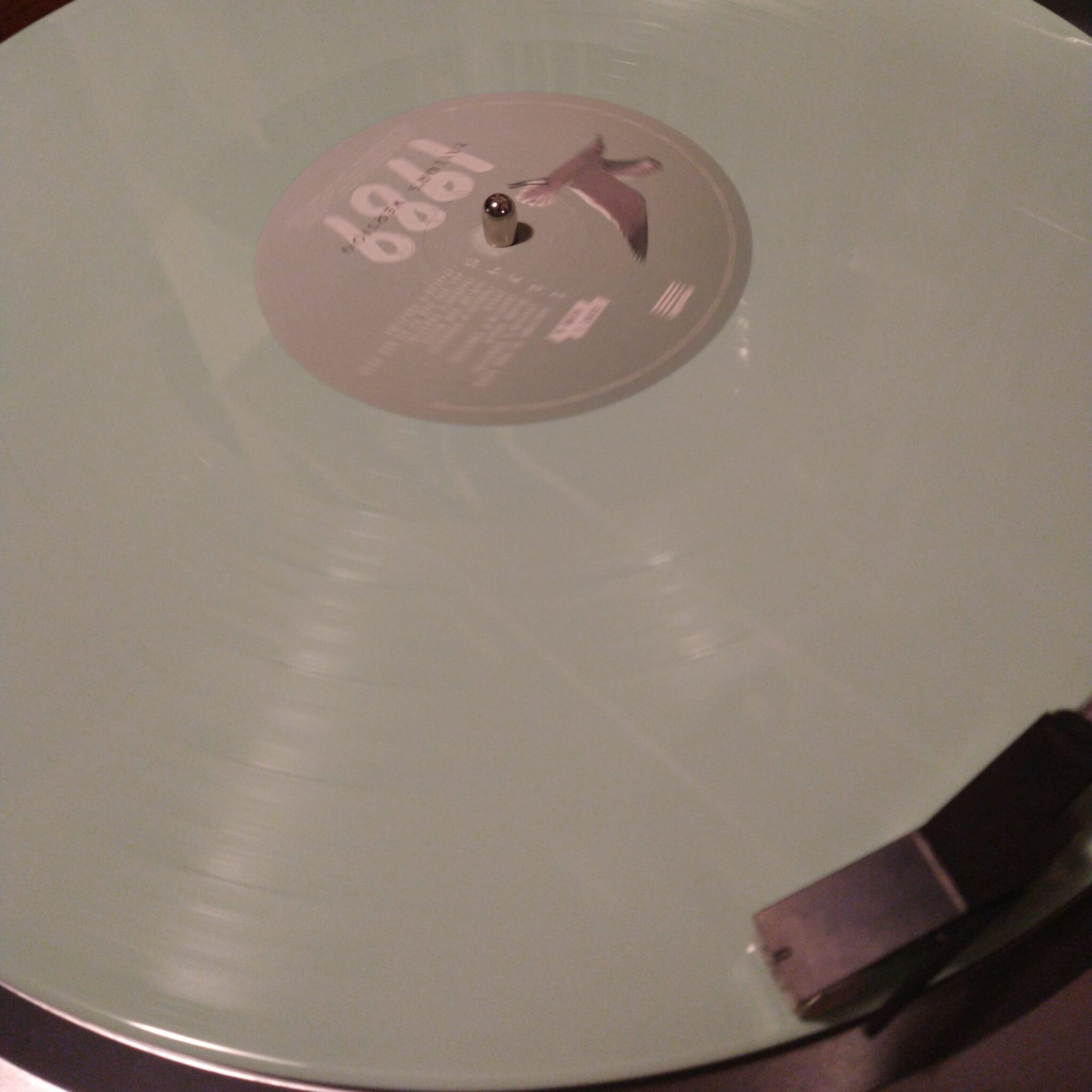 The album itself is nice, the records themselves on this edition are a nice light green color. When opened there is a nice spread of photos, with a record on each half inside. Each of the sleeves has the song lyrics scrawled across them. The box also contained a few small paper stars for some reason. Like large confetti pieces. Part of the reason I picked this version was also because I like the front image on this cover better than the normal edition release (which I think has blue records).