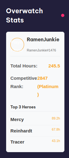 I tried to make a WordPress plug in that would show my Overwatch stats like, most played hero in the sidebar of my blog. It also, sort of worked, but didn’t give me the data I wanted at all.