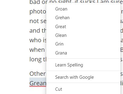 Side note, I typo-ed the word green. Are you OK there Spell Check? The obvious word is not there at all.
