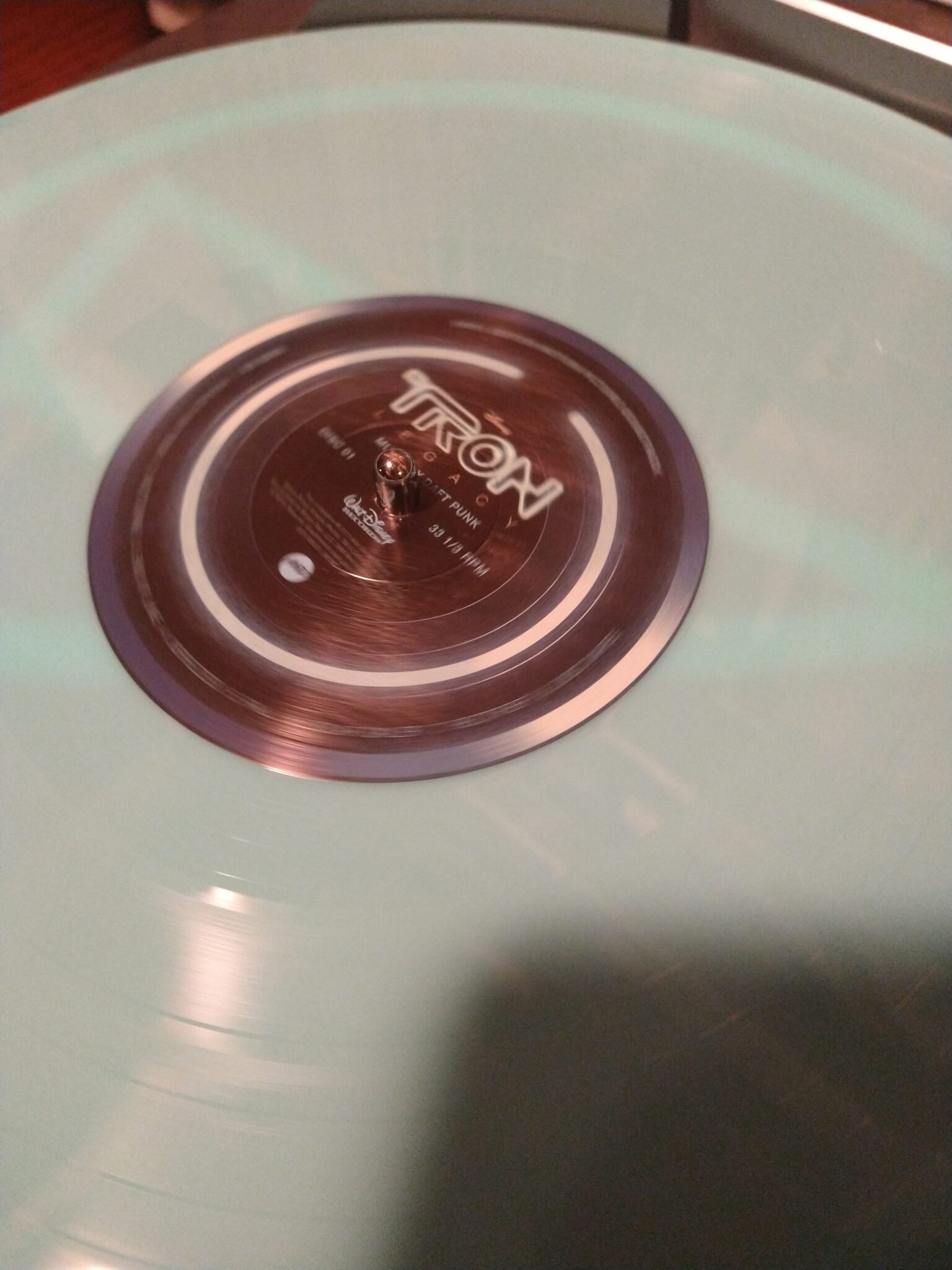 Just one this week, my pre-order of the Tron Legacy 10th anniversary vinyl came in. It’s very nice, I love the way the arcade cabinet slipcover works with the inner cover, but with the slipcover on, it makes it too thick to fit in the grooves on my Vinyl shelf. I wonder if I could carefully chisel a slightly wider slot without taking the whole thing down. Also the second record is orange colored. There are two records and they match the colors of the Tron world. I’ll eventually do a Friday Album post on this album, I am sure.