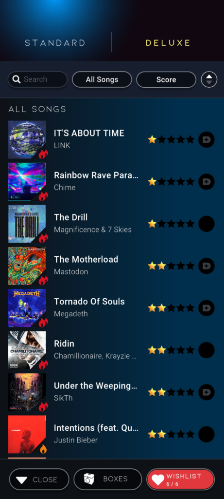 Another, “I can tell I am losing interest. I want to enjoy it more but its just, very repetitious. And I either instantly ace new song unlocks, or its an extreme tier track that I lose in Stage 2 at 10,000 points because hit detection on swipes is pretty ass for a game entirely built around hit detection.
