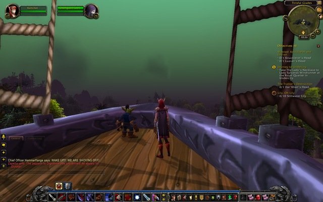 Nothing, nada, zilch. I found a castle, but it was full of unfriendly folks who, while not attacking me, were not really into asking me to fetch crap for them in exchange for money and experience. The village did have a flight stop, which led to several areas that i had not been to yet at all. After consulting some maps online, I took a flight to Undercity, then wandered around until I found the Zeppelin to Ogrimmar. My plan was, at least I could maybe find the quests that I had done previously as an Orc Hunter on my other Avatar.
