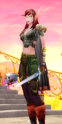 So, I’m a bad ass Blood Elf Fury Official now. You can tell because I’m wielding a bloody cleaver and killing WoW Lions and Goblins and Dark Elves and shit with it. If wielding a meat cleaver over a sword doesn’t scream BLOOD FURY WARRIOR I don’t know what does.