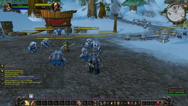 I’m not going to pour through the tedious details of low level Dwarf Quests. The whole experience is comparable to the Orc and Blood Elf experience. Start in an isolated “beginner area”, work your way out into the real war. The Dwarf area is just filled with a lot more snow and technology. Something interesting I found though was fighting Trolls. When I was a Blood Elf I fought Trolls, I forget if I had to face any as an Orc. Basically, everyone seems to hate on the poor Trolls.